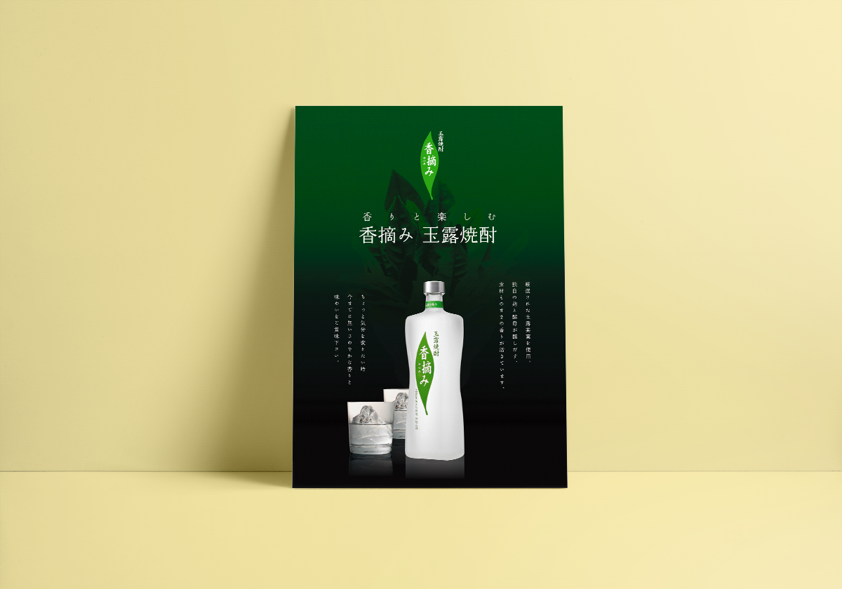 厳選された玉露茶葉を使用した焼酎「 香摘み」